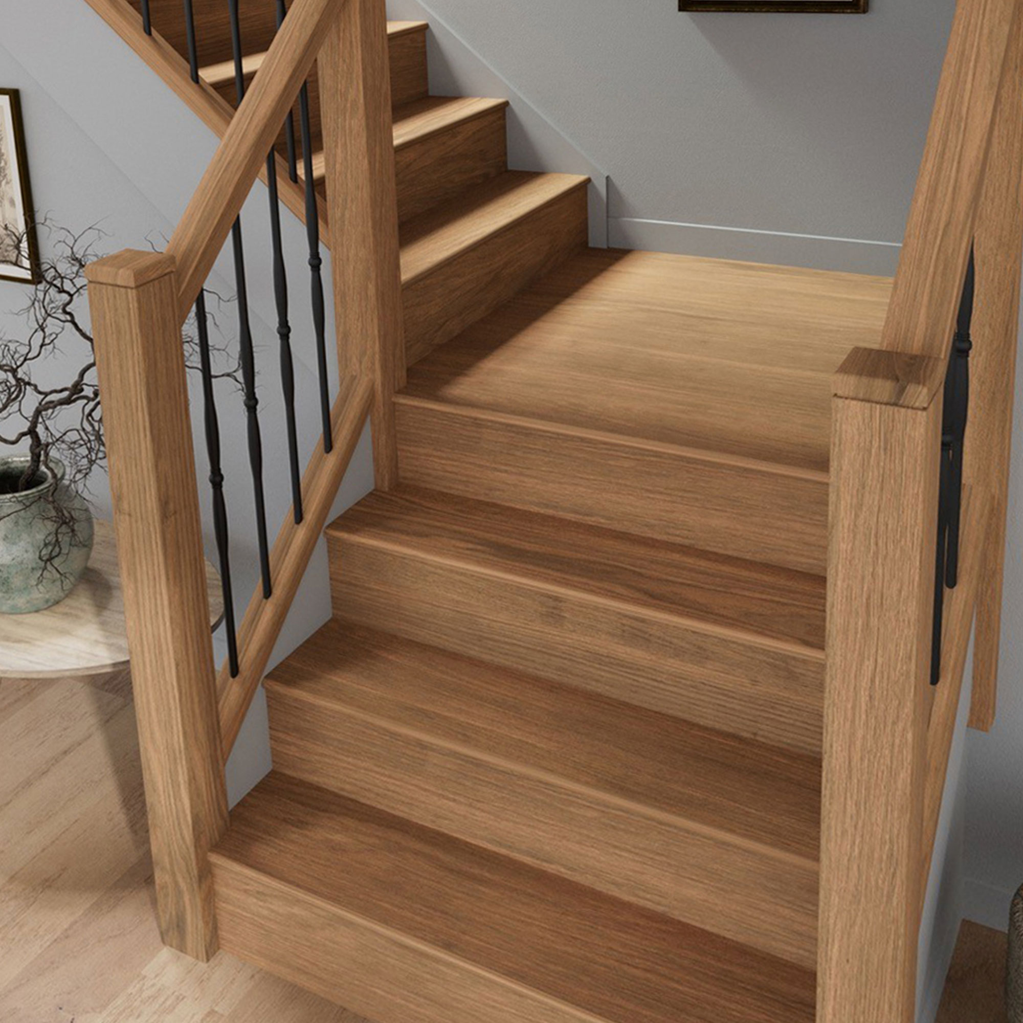 - Seamless way to cover existing stairs, creating the appearance of a solid oak staircase