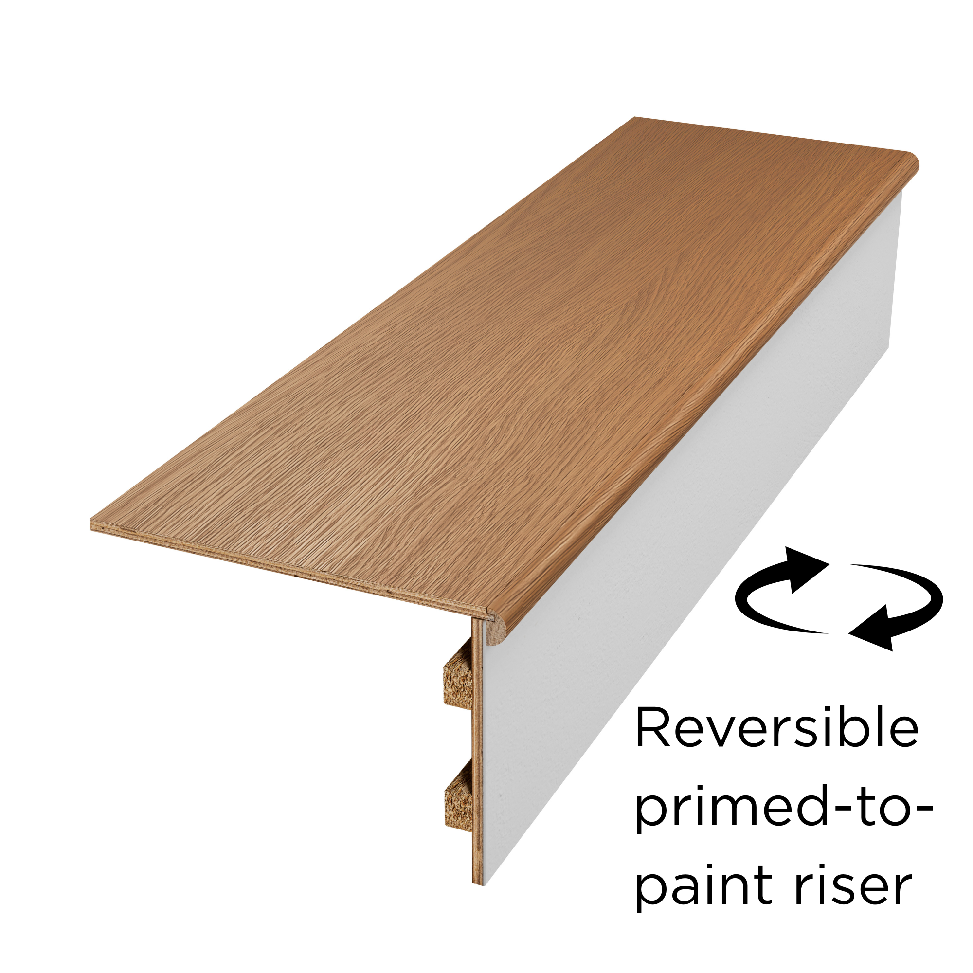 - Dual finish risers: oak veneer on one side, white primed for painting on the other